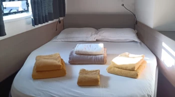 - Dans le cas d'une location avec skipper, vous devez lui attribuer une cabine pour son couchage et lui donner accès à une salle de bain.