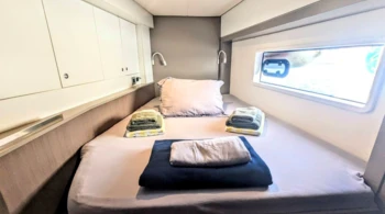 - Dans le cas d'une location avec skipper, vous devez lui attribuer une cabine pour son couchage et lui donner accès à une salle de bain.