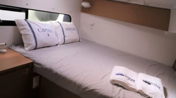 - Dans le cas d'une location avec skipper, vous devez lui attribuer une cabine pour son couchage et lui donner accès à une salle de bain.
