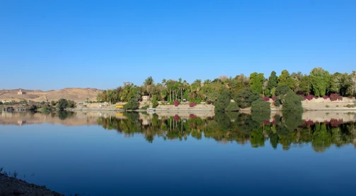 "Mouillage au bord du Nil tranquille, village Kom Ombo, Philae avec arrivée bateau , baignade, temple Horus .. "