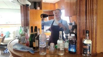 Sie gehen auf Kreuzfahrt mit einer professionellen Crew (Kapitän, Koch...)