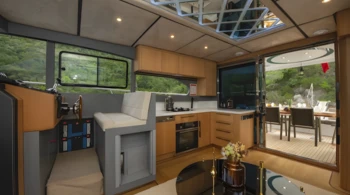 Deck aus Teakholz Bugstrahlruder WLAN Teakholz im Cockpit Gefrierschrank Badeleiter