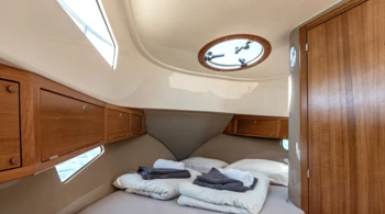 Bei Charterbuchungen mit Skipper ist eine Kabine für seine Unterbringung sowie der Zugang zu einem Badezimmer bereitzustellen.