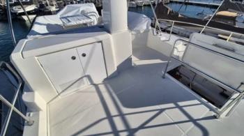 Deck aus Teakholz Bugstrahlruder Sonnenliege Teakholz im Cockpit Grill Anemometer