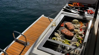 Heizung Grill HiFi System Deck aus Teakholz Bimini Solarpanele