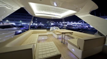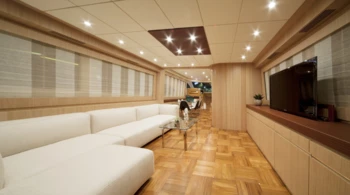 Hélice de proa Tumbona Televisión de plasma Cabina de teca Equipo de audio y Hi-Fi Barbacoa