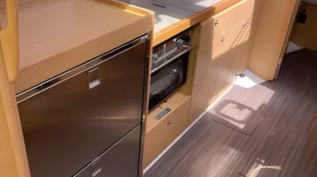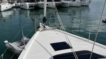 Hélice de proa Placas solares Vela mayor con sables forzados Cojines de bañera Cafetera Nespresso Molinete eléctrico