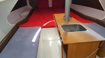 Toldilla Cabina de teca Nevera portátil Horno Agua caliente Manejabilidad