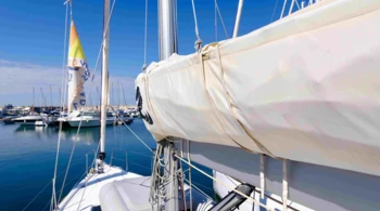 Desalinizadora Toldilla Vela mayor con sables forzados Placas solares GPS en bañera con plotter Winche eléctrico