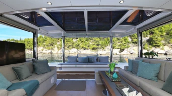 Flybridge Lettini prendisole Pannelli solari Barbecue Doccia sul ponte TV plasma