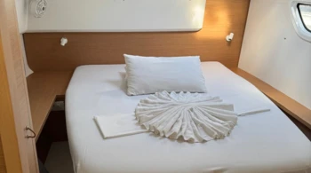 | 8 persone al massimo (in 4 cabine doppie) per tutti i noleggi su catamarani 40' e 42' con skipper | ||