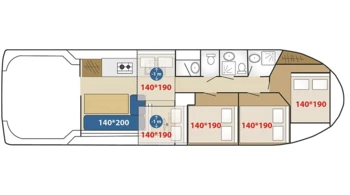 12 cuccette 5 cabine 2 bagno