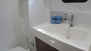 For rentals with a skipper, a cabin must be assigned for him, and access to a bathroom must be provided.