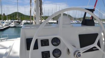 Flybridge Sun lounger Solar panels Bluetooth Dinghy davit Deck shower