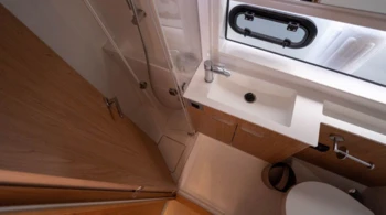 For rentals with a skipper, a cabin must be assigned for him, and access to a bathroom must be provided.