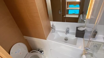 For rentals with a skipper, a cabin must be assigned for him, and access to a bathroom must be provided.