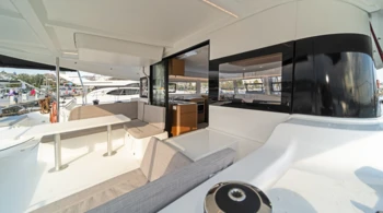 Flybridge Sun lounger Solar panels Bimini Nespresso coffee machine Battened mainsail