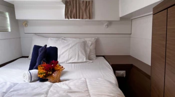 | In some destinations (Bahamas), the skipper requires to sleep in a cabin with access to toilets and showers. | ||