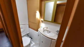 For rentals with a skipper, a cabin must be assigned for him, and access to a bathroom must be provided.