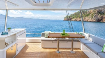 Flybridge Solar panels Nespresso coffee machine USB ports in cabins Hot water Coffee machine