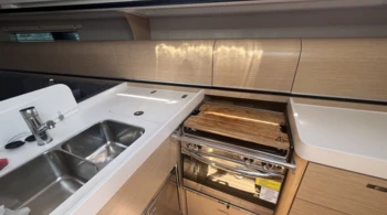 Fully battened mainsail Electric windlass GPS cockpit plotter Electric winch Gas stove Oven