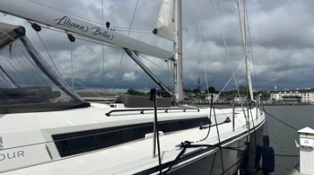 Barbecue Dinghy davit Electric windlass Solar panels GPS cockpit plotter Freezer