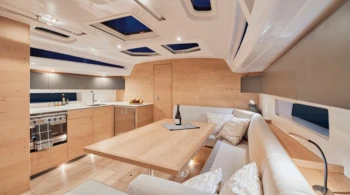 Bimini Fully battened mainsail Bow thruster Oven Spacious deck Habitability