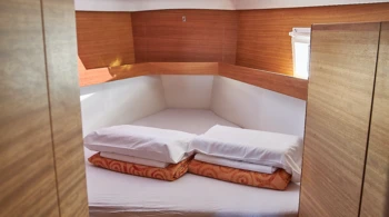 For rentals with a skipper, a cabin must be assigned for him, and access to a bathroom must be provided.