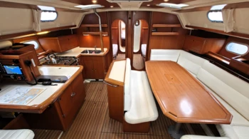 Bimini Fully battened mainsail Bow thruster Cockpit cushions Genoa on furler Spacious deck