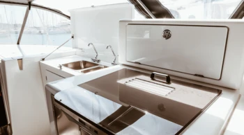 For rentals with a skipper, a cabin must be assigned for him, and access to a bathroom must be provided.