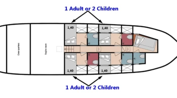 - Cabines avec 1 petit lit double :