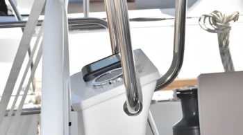 Propulseur d'étrave GPS traceur cockpit Pont en teck Cockpit en teck Panneaux solaires Douche de pont