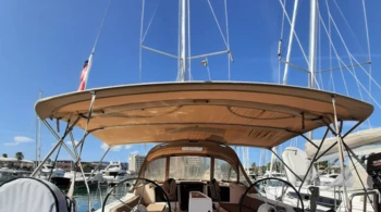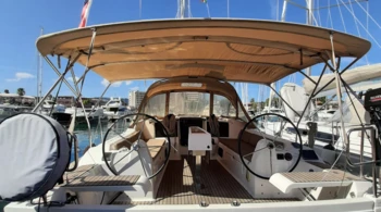 Bimini Cockpit en teck Grand voile complètement lattée Guindeau électrique Génois sur enrouleur Ligne de vie