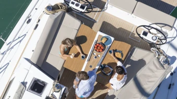 Barbecue Bimini Grand voile complètement lattée Panneaux solaires Propulseur d'étrave Coussins de cockpit